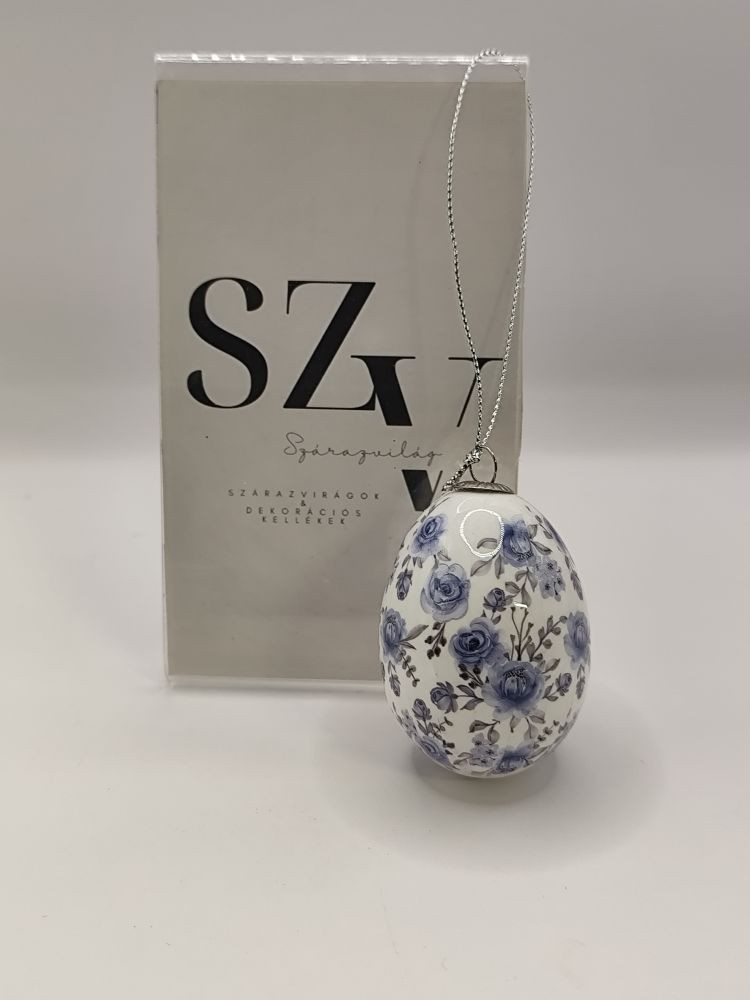 Húsvéti Tójás Akasztós Kék Virágokkal Mintával (6cm)