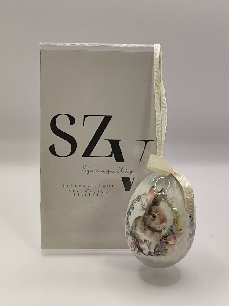Húsvéti Tójás Akasztós Nyuszi Tavaszi Koszorúban Mintával (6 CM)
