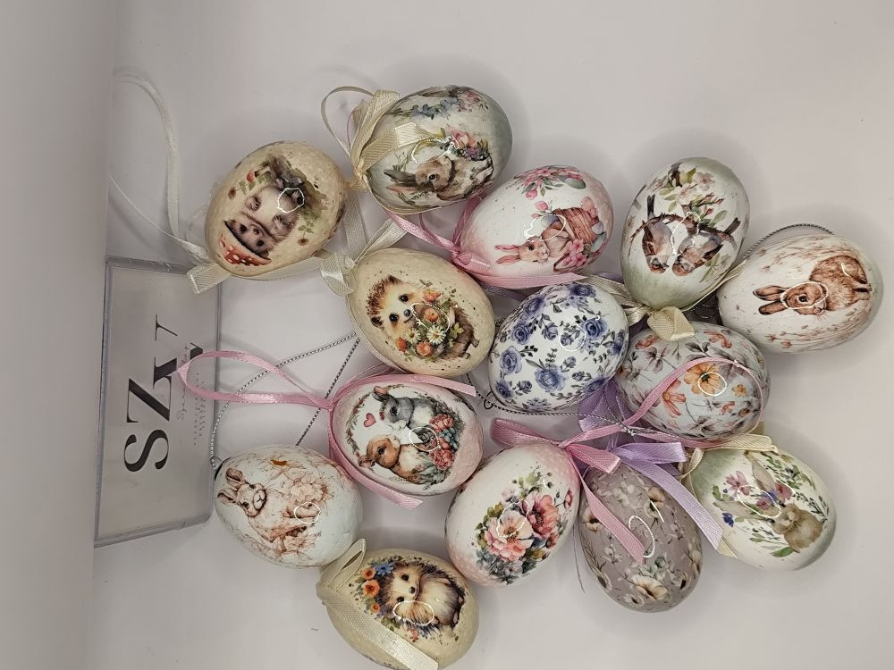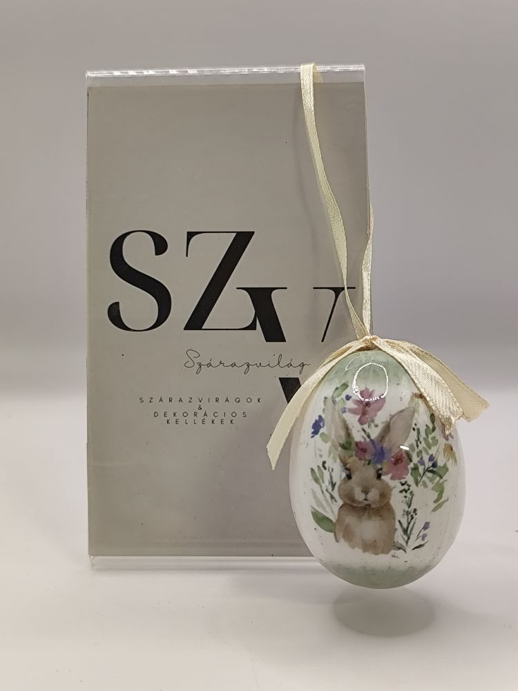 Húsvéti Tójás Akasztós Nyuszi Virágokkal Mintával (6cm)