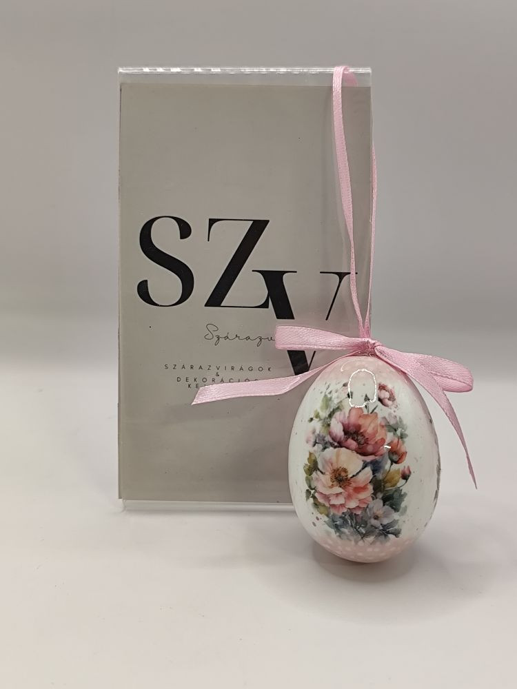 Húsvéti Tójás Akasztós Rózsaszín Virágokkal Mintával(6cm)