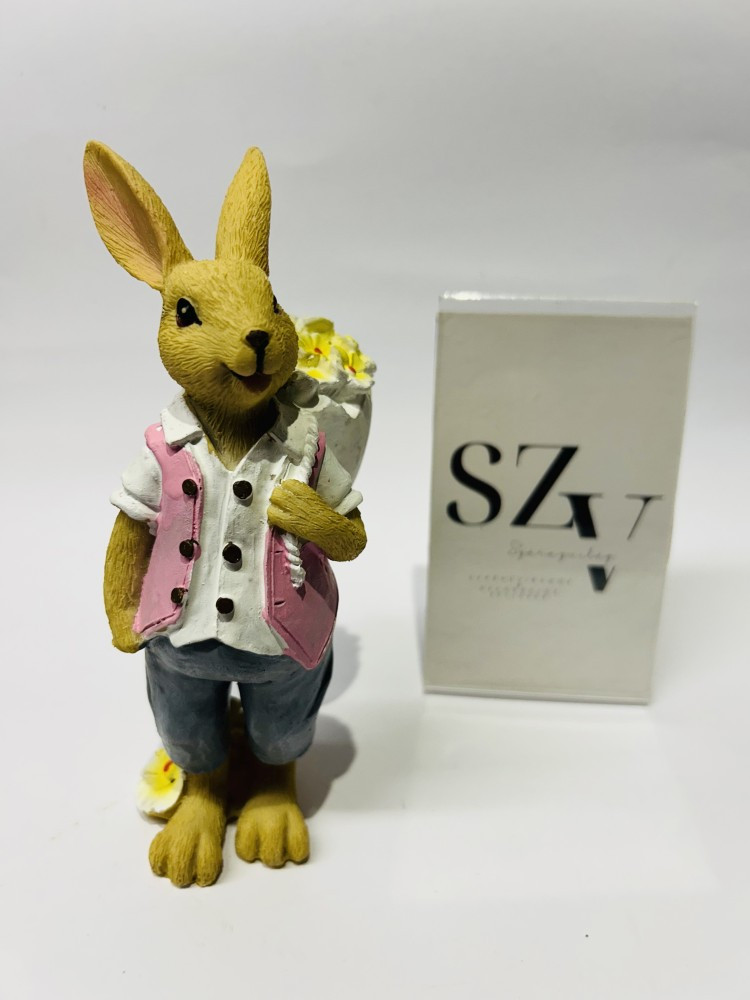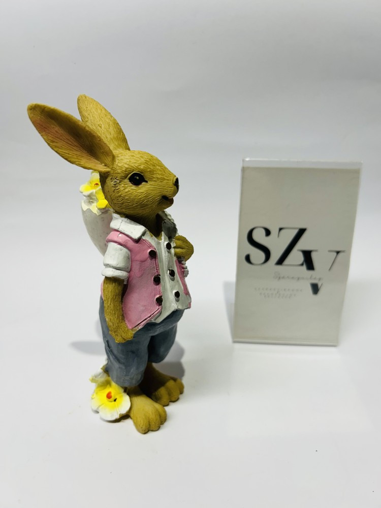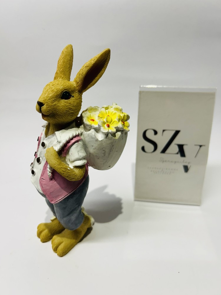 Nyuszi Fiú Virágos kosárral Rózsaszín mellényben