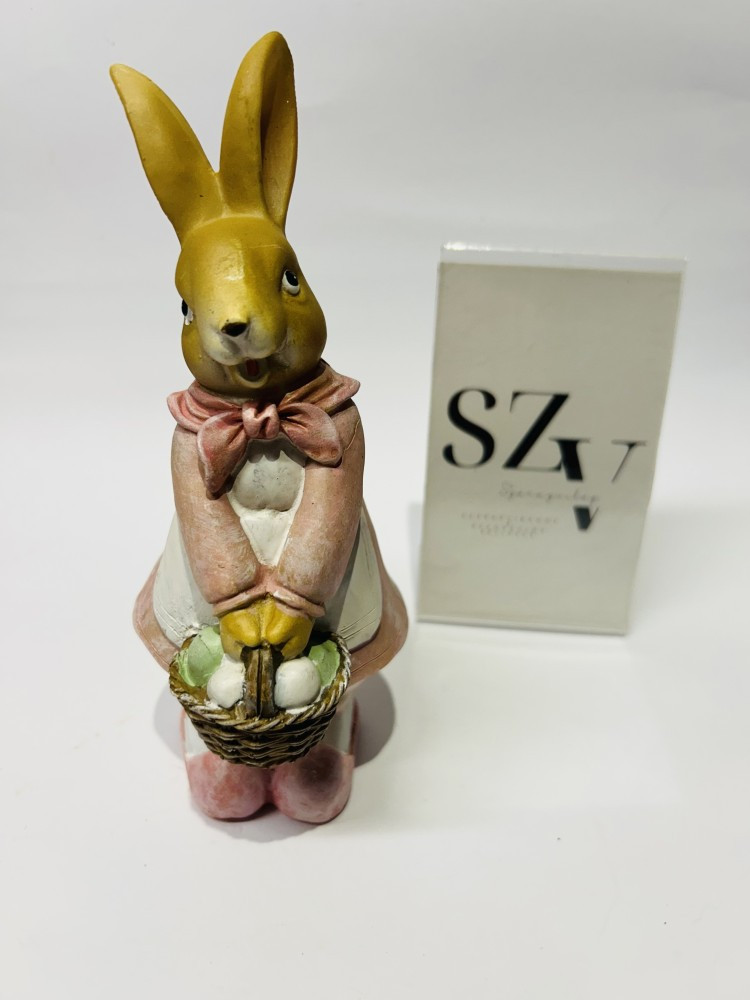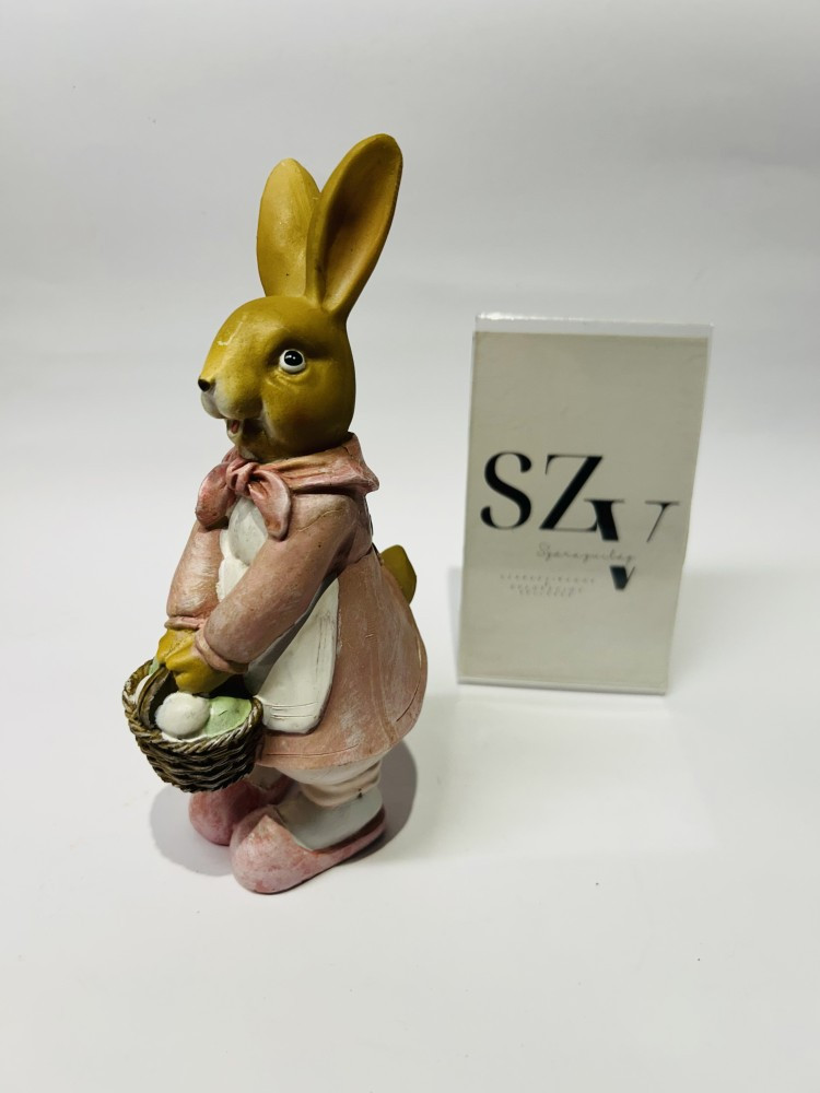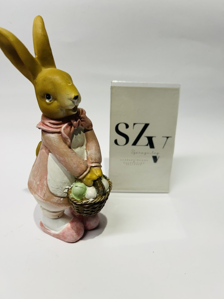Nyuszi Lány Virágos kosárral Rózsaszín Ruhában